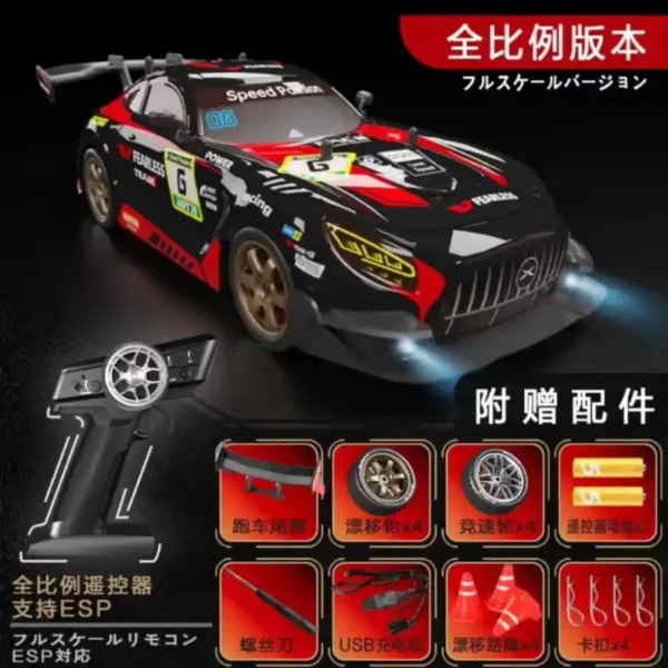 The Mercedes AMG (1:16) Half-Scale Edition is engineered as a compact performance RC platform designed for high-speed drifting and precise proportional control. Built on a lightweight, professional 4WD chassis, this model delivers stable handling, strong straight-line acceleration, and reliable cornering dynamics without the complexity of servo-based or gyroscope-based systems.