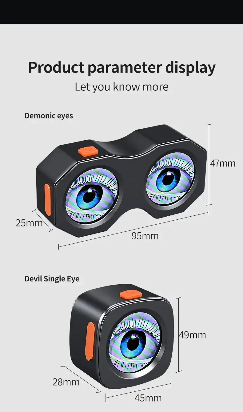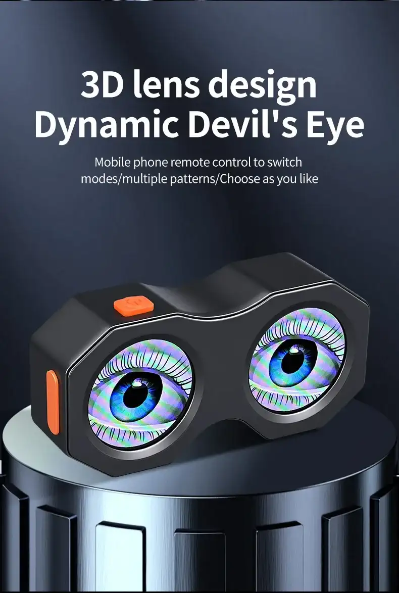 3D Dynamic Eye Design: Eye-catching mirror with animated LED effects for enhanced visibility.